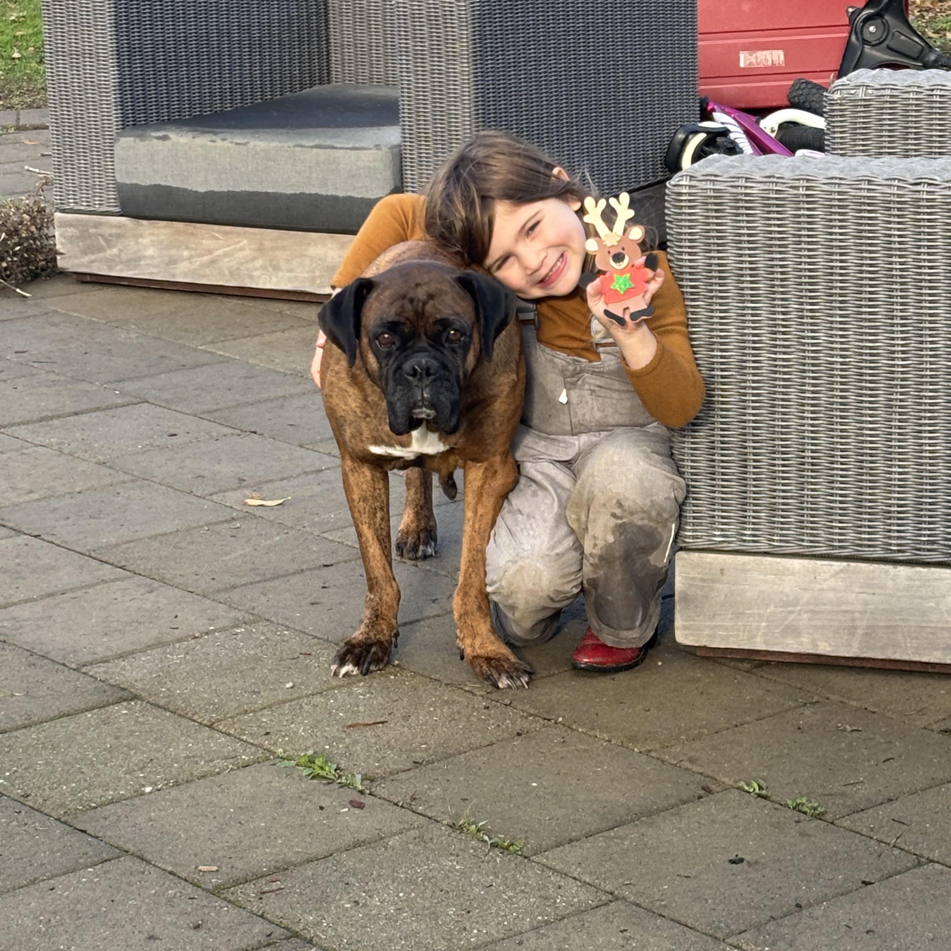 Let me introduce you to the most regal, bed-hogging, child-trampoline known to canine kind: Luna, the female Boxer with a brindle coat that shines more than a full moon.